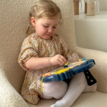Súčasťou sú 4 pečiatky na ozvláštnenie obrázkov a pripútaný stylus, ktorý sa nestratí. Zabudované zvukové tlačidlá ponúknu vyše 400 možností: zábavné efekty, detské pesničky, elektronické zvuky, výučbu anglickej abecedy aj bubon – ideálne na rozvoj kreativity, fantázie a sluchového vnímania.