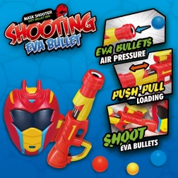 S touto sadou si deti užijú akčnú, no pritom bezpečnú zábavu. Pružinový mechanizmus zabezpečuje spoľahlivé vystrelenie penových guličiek bez potreby batérií, ovládanie je jednoduché a ergonomické pre malé ruky. Štýlová maska s elastickou gumičkou dodá hre šmrnc a podporí fantáziu.