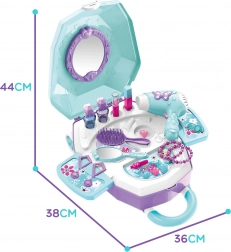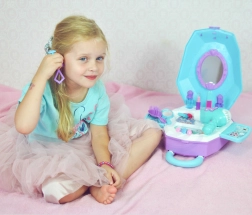 Detský kufrík na kolieskach sa behom chvíľky premení na kompletný toaletný stolík so zrkadlom a výsuvnou pracovnou plochou. Praktické prevedenie 2v1 zaručí zábavu doma aj na cestách a zároveň jednoduché uloženie všetkých doplnkov.