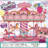 Komplet je balený v farebnej krabičke znázorňujúcej kolotoč, čo je ideálne ako darček. Po rozbalení je sada ľahko prenosná – ľahká a kompaktná, takže ju dieťa môže ľahko vziať do škôlky, k priateľovi alebo na záhradu. Balenie tiež slúži ako organizér pre bezpečné uloženie malých prvkov v sade.