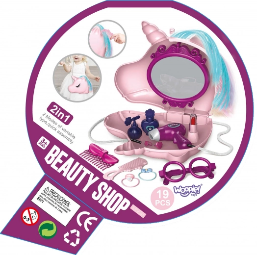 detská toaletka 2v1 salón krásy v kabelke jednorožec WOOPIE