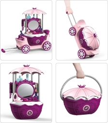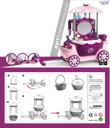 Táto ružovo-fialová toaletka pre deti sa ľahko zloží do praktického kufríka s vysúvacím madlom a kolieskami – ideálna na doma aj na cesty. Deti si môžu otvoriť vlastné prenosné make-up štúdio, česať, líčiť a starať sa o „zákazníkov“ podľa vlastnej fantázie.