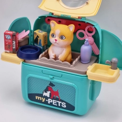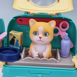 Figúrka mačičky, misky, nožnice, hrebeň, „šampón“, košík na doplnky, krabičky na krmivo a ďalšie. Všetko má svoje miesto, takže je upratovanie hračka.