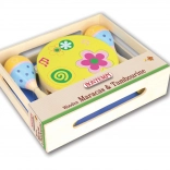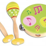 Hudobná sada pre malých muzikantov prináša zábavu, rozvoj rytmu a jemnej motoriky. Obsahuje 2 drevené rumba gule a tamburínu s 8 činelmi – ideálne na prvé hudobné pokusy a domáce vystúpenia.