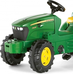 Hľadáte odolný a bezpečný šliapací traktor pre malých farmárov? Model Rolly Toys JOHN DEERE Farmtrac zaujme realistickým vzhľadom, otváracou kapotou a kvalitným spracovaním, ktoré vydrží každodenné detské dobrodružstvá. Vďaka reťazovému prevodu zvládnu jazdu aj menšie deti.
