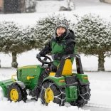 Robustný šliapací traktor JOHN DEERE Rolly X‑Trac Premium prináša deťom realistickú jazdu aj zábavu doma aj vonku. Má tiché kolesá s gumovými pásmi, odnímateľnú a pohyblivú prednú lyžicu, otváraciu kapotu a nastaviteľné sedadlo, ktoré rastie s dieťaťom. Zabudovaný mechanický pohon chráni malých vodičov a zaisťuje bezpečnú hru.