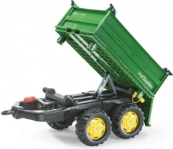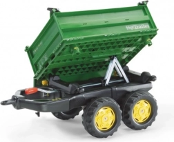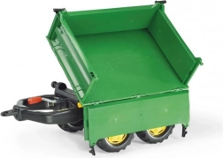 Príves Rolly Toys je stabilný dvojnápravový výklopný príves, ktorý možno vyklápať na tri strany. Tento zelený príves je vybavený robustnými kolesami, čo umožňuje ľahkú prepravu nákladu. Je kompatibilný s každým vozidlom Rolly Toys s výnimkou modelov rollyKids a RollyDumperKid.