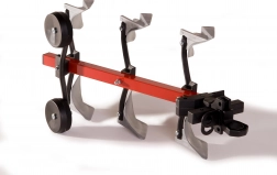 Pluh je vybavený šiestimi radlicami a dvoma kolieskami, ktoré pomáhajú udržať správnu stopu a ľahšiu manipuláciu na rôznych povrchoch.
