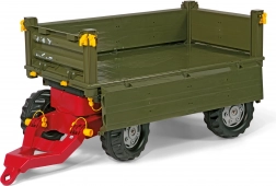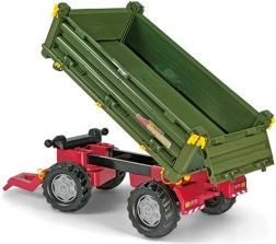Tento zelený príves pre šliapacie traktory ponúka trojstranné sklápanie, ktoré uľahčuje vykladanie piesku, lístia aj drobných pokladov malých farmárov. Dve nápravy zabezpečujú vyššiu stabilitu a plynulú jazdu aj pri väčšom zaťažení.