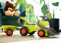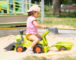 Traktor je vybavený pohyblivou lyžicou, ktorá prináša deťom radosť pri navážaní a presúvaní materiálu. Týmto spôsobom si môžu vyskúšať skutočnú rolu bageristu.