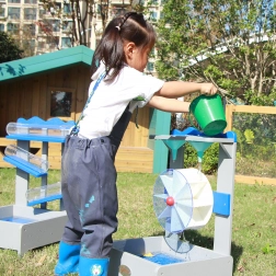 Robustná konštrukcia z odolných materiálov s netoxickou povrchovou úpravou je vhodná na vonkajšie použitie. Deti sa ľahko naučia princíp príčina–následok: nalejem vodu – koleso sa roztočí. Vodná stanica je ideálna na hru pri pieskovisku, v záhrade aj v materských školách.