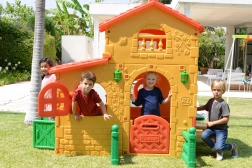 Domček Super Villa prináša deťom realistickú hru na domácnosť aj kopec fantázie. Dizajn so vzorom tehál a kvetín, delené dvere s otvorom na listy a zvonček pri dverách vytvárajú autentickú atmosféru. Vďaka veľmi svetlému a priestrannému interiéru si deti užijú pohodlnú hru vnútri aj vonku.