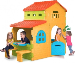 Objavte priestranný detský domček Super Villa od FEBER – farebný a odolný záhradný domček s veľkým vnútorným priestorom, stolíkom a dvoma lavičkami, otvárateľnými okienkami a poštovou schránkou vo dverách. Vďaka Anti-UV ochrane si udrží farby a je ľahký na montáž, ideálny pre deti od 3 rokov.