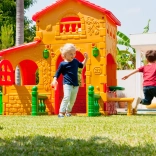 Integrovaný nábytok podporuje kreslenie, desiaty aj role-play. Ideálne na dlhšie hranie vonku na záhrade.