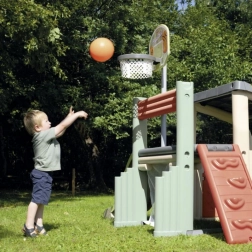 Integrovaný kôš s odolnou sieťou podnecuje pohyb a súťaživosť – perfektné pre prvé športové krôčiky a zábavné súboje s kamarátmi.