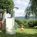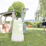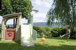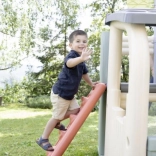 Lezecké prvky a 150 cm šmýkačka rozvíjajú rovnováhu, silu aj motoriku. Deti ľahko vystúpia a s radosťou sa spustia dole.