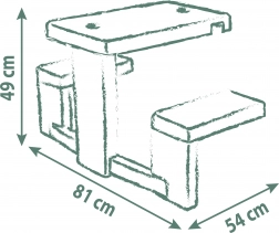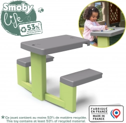 Piknikový stolík s dvomi lavičkami je ideálny doplnok pre detské domčeky ako **Neo Jura Lodge**, **My New House**, **Chef House** a **Evo Friends House**. Tento produkty zaručuje odolnosť a dlhú životnosť farieb vďaka anti-UV úprave.