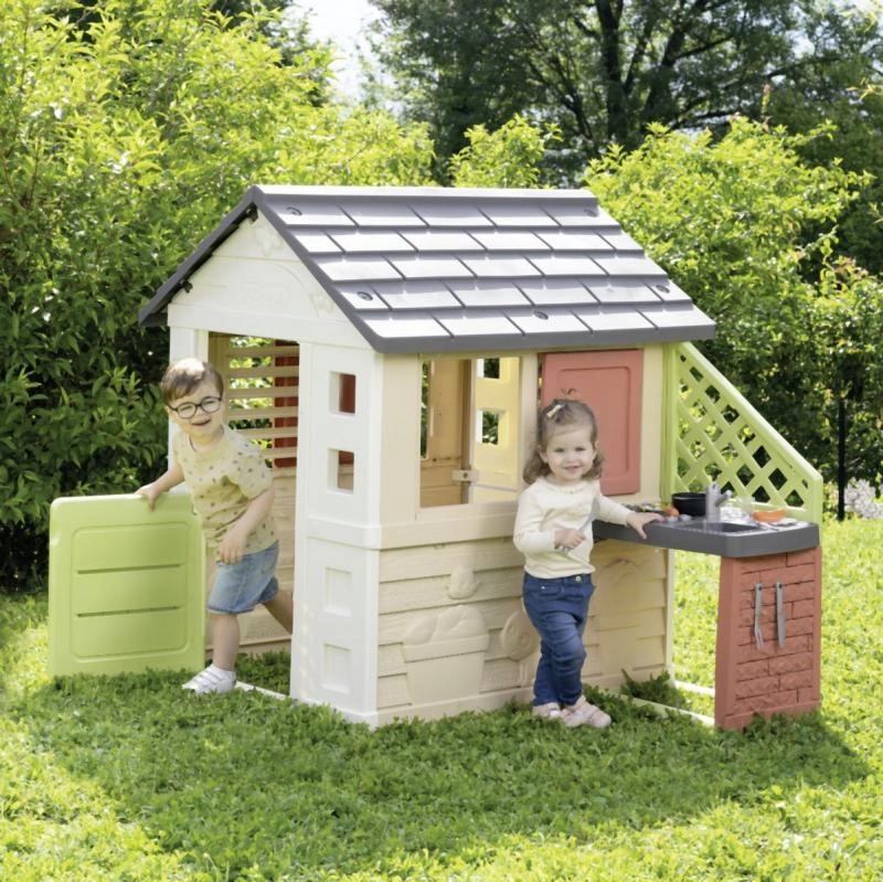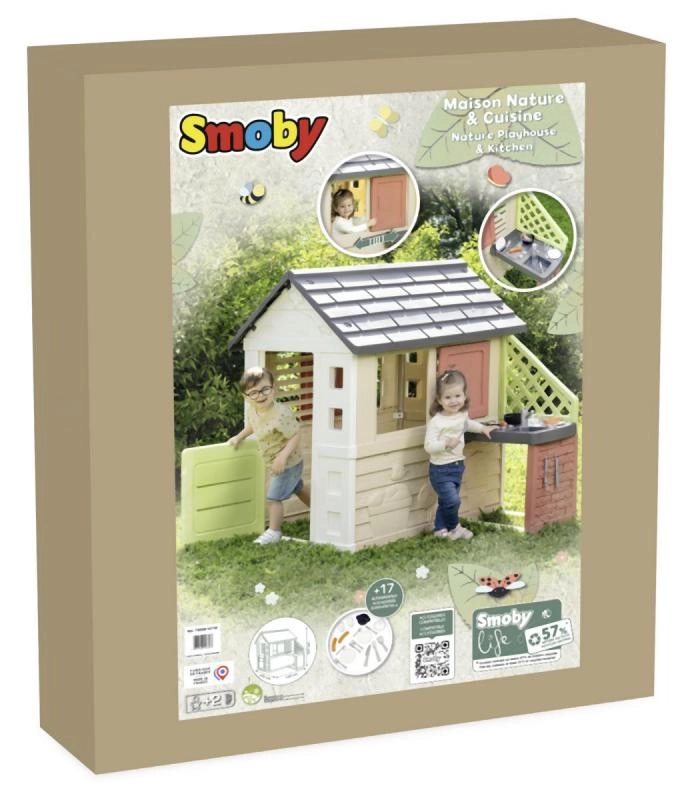 Smoby Nature je stabilný a odolný domček navrhnutý na každodenné hranie na záhrade. Súčasťou je prístavba s kuchynkou s grilom a drezom (atrapa) a bohaté príslušenstvo, vďaka ktorému môžu deti rozvíjať svoju fantáziu a hrať sa na malých kuchárov. Neutrálne farby zapadnú do každého exteriéru a povrch s ochranou ANTI‑UV bráni blednutiu na slnku.