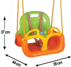 Hojdačka 3v1 je skvelou voľbou pre rodičov, ktorí chcú bezpečné a dlhodobé riešenie pre zábavu na záhrade aj v interiéri. Vďaka modulárnemu systému možno ľahko odňať operadlo aj prednú zábranu na nohy, takže sedadlo prispôsobíte veku a zručnostiam dieťaťa. Integrované pásy držia malého pasažiera pevne a pohodlne, zatiaľ čo pevné plastové materiály bez ostrých hrán zaisťujú bezpečie a jednoduché čistenie.