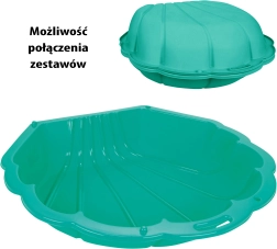 Mušľa na pieskovisko značky Woopie je dokonalá hračka na použitie doma aj vonku. Je vyrobená z materiálu odolného voči poveternostným vplyvom, farba nevybledne na slnku. Nemá ostré hrany, čo zaisťuje bezpečnosť pri hre vášho dieťaťa. Pieskovisko sa skladá z dvoch častí a je ideálne na dlhé hodiny zábavy na čerstvom vzduchu. V horúcich dňoch poslúži ako pieskovisko či bazén. Po nalití vody môže jedna polovica slúžiť ako bazénik a druhá ako pieskovisko. Pieskovisko je možné zaklopiť a bezpečne ho nechať na noc, chrániac piesok pred zvieratami alebo dažďom. Mimo sezónu sa môže v domácnosti použiť ako veľký úložný priestor na hračky alebo ako suchý bazénik na loptičky. Dvojdielna skladacia mušľa je pohodlná na prepravu a ľahko sa čistí. Vďaka zaobleným hranám je hračka bezpečná pre dieťa.