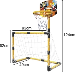 S touto multifunkčnou sadou si deti precvičia koordináciu, presnosť aj tímového ducha. Kompletné balenie obsahuje basketbalový kôš, futbalovú bránku, lopty a pumpičku – stačí rozbaliť a začať hrať. Vďaka pevnej a stabilnej konštrukcii je sada vhodná do interiéru aj exteriéru a ponúka nízku hlučnosť pri používaní.