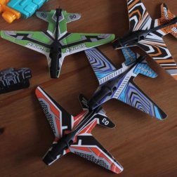 Pre ešte väčšiu zábavu možno odpáliť až tri lietadlá súčasne. Mäkké penové lietadlá letia stabilne a bezpečne, s dosahom až 8 metrov.