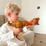 Hračka je vyrobená na bezpečné hranie v interiéri aj exteriéri. Svetelné efekty aktivujete tlačidlom na hlave dinosaura, zvuky spustíte pomocou spúšte v hlavni. V balení nájdete spolu 22 dielov – bohatá výbava na dlhé hodiny hry. Dostupné v 2 farbách (zelená/hnedá – výber náhodný).