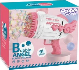 Zábavná pištoľ na bubliny WOOPIE premení každé hranie na čarovnú podívanú. Vďaka 91 otvorom vytvorí obrovské množstvo bubliniek na jedno stlačenie spúšte. Je ľahko ovládateľná, ideálna von aj domov a v balení nájdete aj 2 fľaštičky s roztokom, akumulátor a nabíjací kábel – stačí nabiť, namočiť a bublinková zábava môže začať.