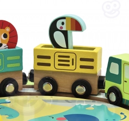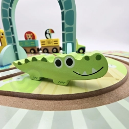 Táto kvalitná drevená sada od značky TOOKY TOY prináša deťom zábavnú jazdu po ZOO. Mašinka s magnetickými vagónikmi prechádza cez skladaciu bránu ZOO po pevných drevených koľajniciach, zatiaľ čo deti objavujú svet zvieratiek a vymýšľajú vlastné príbehy.