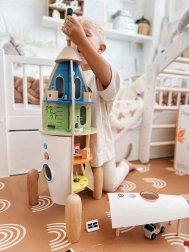 Táto detailne spracovaná raketa skrýva až 12 tematických miestností (napr. zásobáreň, operačná sála alebo laboratórium), ktoré deti povzbudzujú k otvorenej hre a rozprávaniu príbehov. Vďaka odnímateľným sekciám a interaktívnym dielom sa deti učia logike, trpezlivosti a spolupráci.