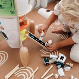 Hračka je vyrobená prevažne z dreva, doplnená kvalitným plastom a ošetrená netoxickým lakom. Je odolná, esteticky spracovaná a navrhnutá na dlhodobé hranie v detskej izbe. Podporuje predstavivosť, kreativitu aj jemnú motoriku.