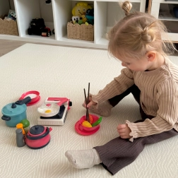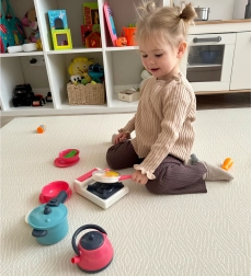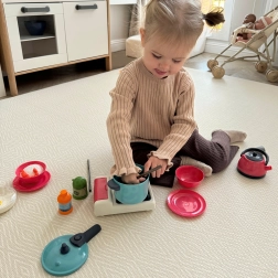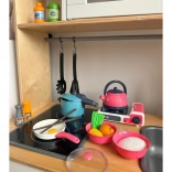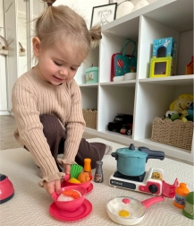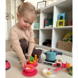 Set je vyrobený z bezpečných materiálov a detailné prevedenie skutočných kuchynských nástrojov zaručuje bezpečnosť a trvanlivosť. Do tejto hračky nie sú potrebné batérie, a navyše je kompaktná, čo uľahčuje jeho skladovanie.