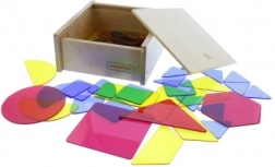 Sada priehľadných farebných dosiek rôznych tvarov, vďaka ktorým je výuka skladania geometrických tvarov jednoduchá a ľahká. Diely sú vyrobené z odolného akrylu v presných farbách, čo umožňuje deťom získať tiež znalosti o miešaní farieb, např. červená + žltá = oranžová. Ideálna kombinácia so svetelnou tabuľou LED Masterkidz Education. Sada je dodávaná v pevnom drevenom puzdre, čo uľahčuje skladovanie.