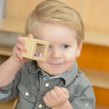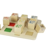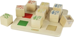 Ďalšou funkciou hračky je možnosť naplnenia prázdnej kocky ľubovoľným materiálom, napríklad pieskom alebo kamienkami, a zistiť, aký zvuk bude pri zatrasení vydávať. Hračka je ideálna pre detské prístupy podľa Montessori.