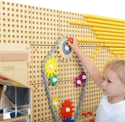 Premeňte nástennú tabuľu na interaktívnu dielňu. Táto 79-dielna sada MASTERKIDZ obsahuje rôzne veľké ozubené kolesá, pastorky, reťaz a montážne prvky, vďaka ktorým deti ľahko zložia vlastné súkolesie. Pomocou špeciálnych skrutiek Masterkidz jednotlivé diely pripevnia k STEM tabuli, potočia kľukou a sledujú, ako sa celý mechanizmus dáva do pohybu.