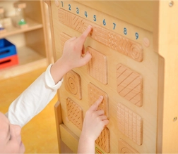 Dieťa prstom preskúma malú dlaždicu a hľadá zhodu medzi deviatimi veľkými. Posilňuje hmatové vnímanie, pamäť a sústredenie hravou formou.