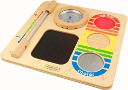 Interaktívna drevená tabuľa značky MASTERKIDZ učí deti rozlišovať teplé, neutrálne a studené podnety bezpečným a hravým spôsobom. Vďaka na teplotu citlivej ploche a farebnému teplomeru si deti názorne vyskúšajú, čo je teplejšie a čo chladnejšie, a lepšie porozumejú tomu, kedy sa veci nedotýkať. Ideálne pre domácnosť, škôlku aj špeciálnu pedagogiku, kompatibilné so systémom Masterkidz Flex.