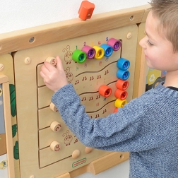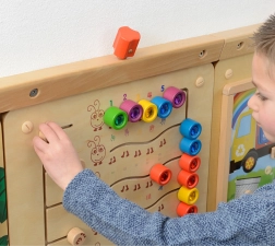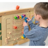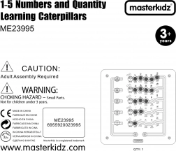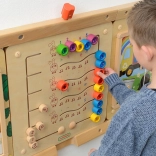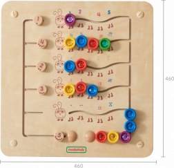 Vzdelávacia tabuľa s piatimi farebnými húsenicami slúži na hravé učenie čísel a množstva. Obsahuje 15 počítadiel s diamantmi v piatich farbách, ktoré sú umiestnené na posuvných lištách.