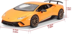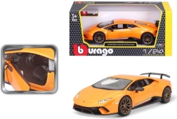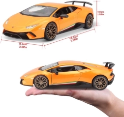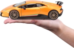 Legendárne LAMBORGHINI Huracán Performante v mierke 1:24 poteší každého fanúšika rýchlych áut. Kovová karoséria (die-cast) s plastovými detailmi, realistické proporcie a precízny lak robia z tohto modelu atraktívny kúsok na výstavku aj do detských rúk.