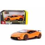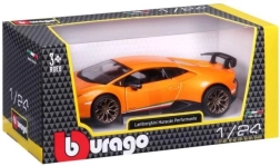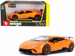 Doplňte svoju zbierku o licencovaný kovový model BBURAGO 1:24 LAMBORGHINI Huracán Performante v oranžovej farbe. Nadchne detailným spracovaním, otváracími dverami a gumovými pneumatikami. Ideálny pre zberateľov aj deti od 3 rokov, dodávaný v krabičke s priezorom.