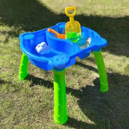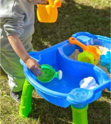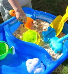 Objavte zábavu pri vode aj v piesku so stolíkom WOOPIE 2v1. Dve samostatné komory umožnia deťom naliať vodu do jednej a nasypať piesok do druhej, takže môžu naberať, prelievať, siať a tvarovať bez neporiadku okolo. Súčasťou je bohaté príslušenstvo, ktoré podnecuje zmyslovú (sensory) hru, rozvíja jemnú motoriku a kreativitu.