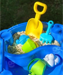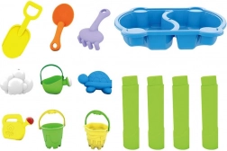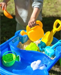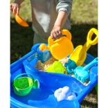 Súčasťou sú kanvičky, lopatky, hrable, vedierka, formička a „obláčik“ na vytláčanie vody – všetko pre nekonečné herné scenáre.