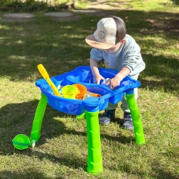 Ľahká a pritom pevná plastová konštrukcia sa zloží behom chvíľky. Stolík je perfektný na vonkajšie aj vnútorné použitie – na záhrade, na balkóne, v herni aj na pláži či v pieskovisku. Svieže farby a príjemné tvary lákajú k hre a udržiavajú pozornosť detí.