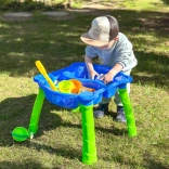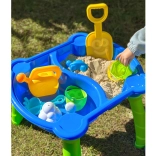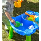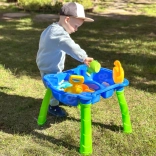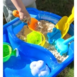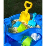Praktické dvojité vane umožňujú čistú hru bez miešania vody a piesku. Deti môžu súčasne naberať, prelievať a tvarovať.