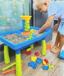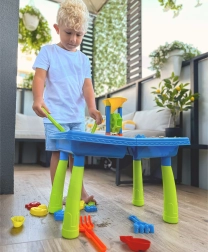 Vďaka dvom oddeleniam umožňuje stôl hrať sa s vodou aj pieskom súčasne, čo ponúka pestré možnosti zábavy.