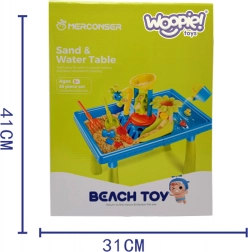 Stôl na vodu a piesok WOOPIE sa skvele hodí ako pre hry na záhrade, tak aj doma. Ponúka skvelú kombináciu hier s pieskom a vodou a vďaka interaktívnym prvkom, ako sú vodné mlynčeky, je hra ešte zábavnejšia.