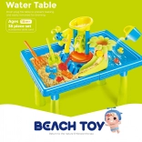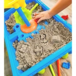 V balení nájdete: stôl na vodu, kanvička, 3 vodné mlynčeky, 2 lopatky, sitko a 12 formičiek.