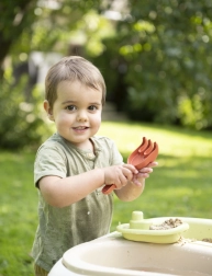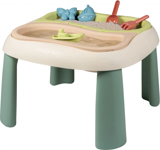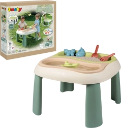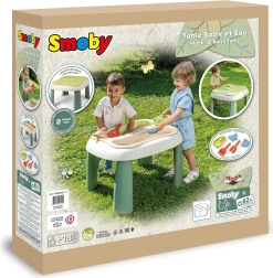 od 18 mesiacov veku. Vďaka dvom vyberateľným nádržiam sa deti môžu súčasne hrať s pieskom a vodou, rozvíjať svoju kreativitu a zmysly. Tento stolík predstavuje skvelú zábavu na čerstvom vzduchu, spája ekológiu a odolnosť a prináša veľa radosti pre najmenších. Perfektná voľba do záhrady, na balkón alebo terasu!