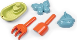 - Bohatá sada príslušenstva – lopatka, hrabličky, loďka a dve formičky na piesok