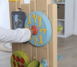 Smoby stena aktivít je vynikajúcou hračkou, ktorá poskytne deťom hodiny skvelej zábavy a zároveň pomôže rozvíjať ich motorické zručnosti, kreativitu a logické myslenie. Produkt je vyrobený z 84 % recyklovaného plastu, čo z neho robí ekologickú voľbu. Stena ponúka 6 rôznorodých aktivít a až 29 doplnkov, ktoré môžu zabezpečiť nekonečnú zábavu na záhrade, terase alebo v detskej izbe.